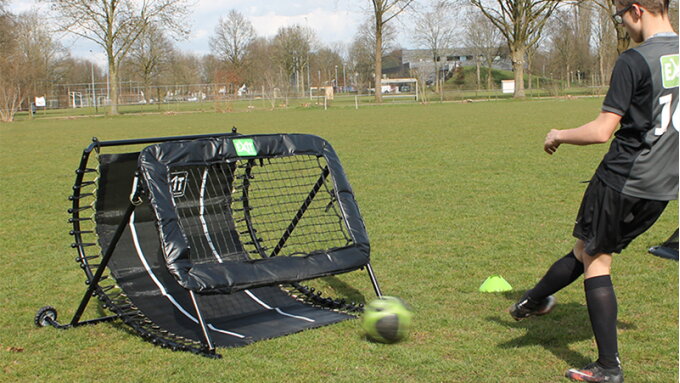 Todos los rebotadores EXIT se pueden colocar en distintos ángulos de entre 35° y 90°. ¡Cuanto mayor sea el ángulo en el que esté el rebotador, más difícil será el juego! Tú decides cómo rebotará el balón. Con el rebotador Tempo 100 x 100 cm puedes elegir entre siete posiciones, el Tempo 120 x 120 cm tiene ocho posiciones y los rebotadores Kickback se pueden colocar en nada menos que diez posiciones. El rebotador de fútbol EXIT especial se puede colocar en siete posiciones diferentes. ¡Tú eliges!