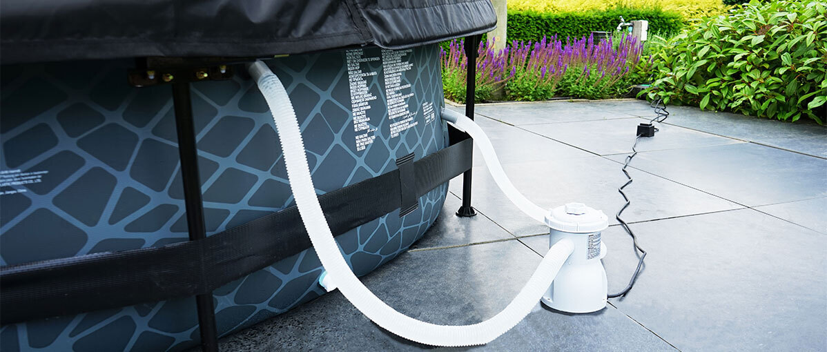 Las bombas de salida también mantienen el agua en circulación para contrarrestar el desarrollo de bacterias, moho y algas. En caso de uso intensivo de una piscina desmontable, es aconsejable tener bombas de filtro en constante funcionamiento, incluso por la noche. Sin embargo, recomendamos apagar las bombas cuando la piscina esté en uso. ¿Tienes curiosidad por conocer otras formas de mantener tu piscina limpia? Entonces lee nuestro blog sobre cómo mantener limpia tu piscina desmontable.