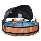 Piscina EXIT Wood ø360x76cm con bomba de depuración y toldo, color marrón
